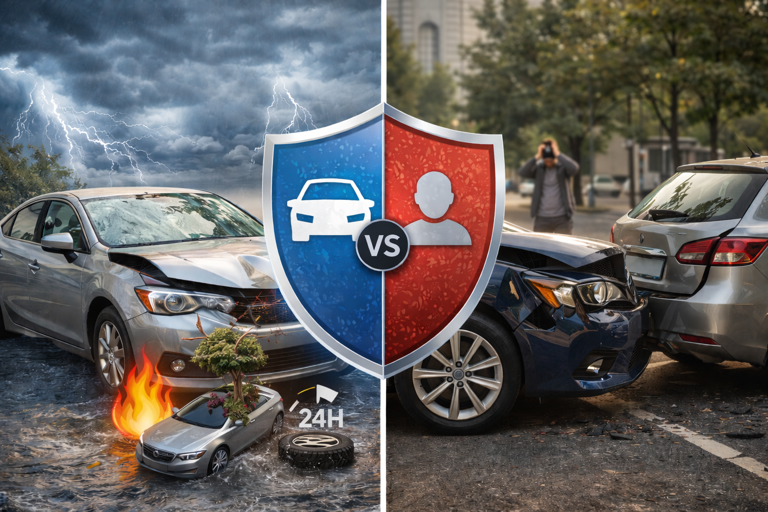 A principal distinção reside na proteção do seu patrimônio. No Seguro Compreensivo, seu carro está coberto contra os principais riscos. No Seguro Contra Terceiros, apenas os danos causados a outros veículos ou pessoas são pagos pela seguradora.